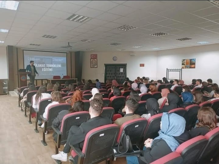 28 Mayıs 2024 tarihinde saat 15:00 da Fen Edebiyat Fakültesi Şehit Erdem Diker konferans salonunda Matematik Bölümü ve Türk Dili ve Edebiyatı Bölümü Kariyer Planlama Dersi ders sorumluları koordinatörlüğünde KARMER Eğitim Sorumlusu Öğr. Gör. Yunus Eren IŞILDAK tarafından Mülakat Teknikleri Eğitimi verildi. Eğitime Matematik Bölümü ve Türk Dili Edebiyatı Bölümü öğrencileri katılım sağladı. Eğitimde mülakat kavramı ve mülakat türleri, iş görüşmesine gitmeden önce yapılması gerekenler, iş görüşmesi süreci ve görüşme sırasında sorulabilecek sorulara ilişkin hazırlıklar, görüşme sürecinde beden dili, işveren tarafından uygun görülmeyen davranış örnekleri, güçlü ve zayıf yönler, işverene sorulabilecek sorular ile ilgili hususlar teorik olarak anlatıldı. Ardından katılımcıların daha önce hazırladıkları ve yanlarında getirdikleri öz geçmişleri ile uygulamalı olarak mülakat simülasyonu gerçekleştirildi.